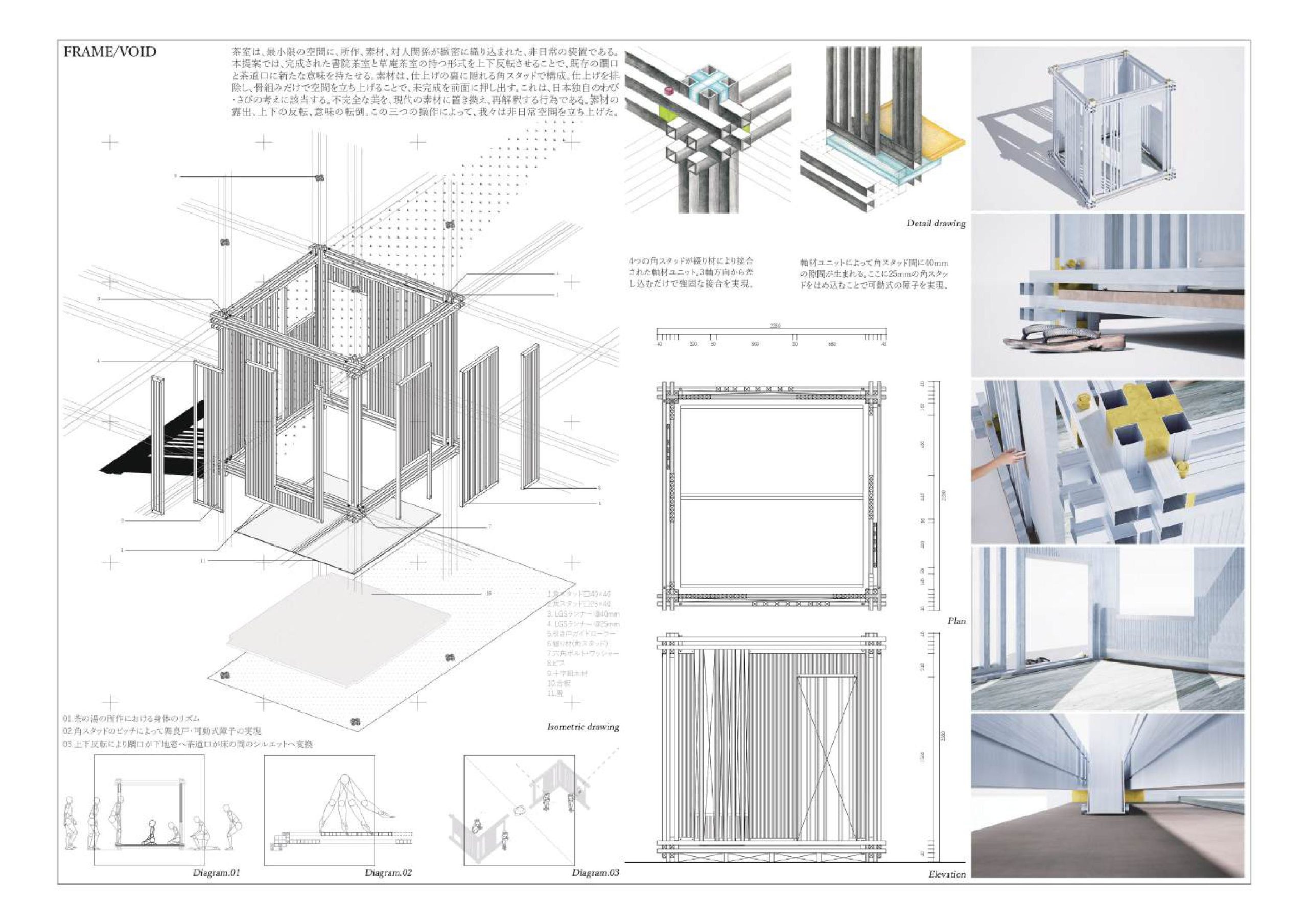 日本建築学会主催の建築文化週間学生グランプリ2025「銀茶会の茶席」において博士前期課程2年神保太亮さん(地域デザイン研究室(山中ゼミ))、新藤範幸さん(木質構造デザイン研究室(廣石ゼミ))、1年大塚達哉さん、三浦哲平さん(建築設計研究室(古澤ゼミ))らによる「FRAME/VOID」が審査員賞(出口亮賞)を受賞しました。