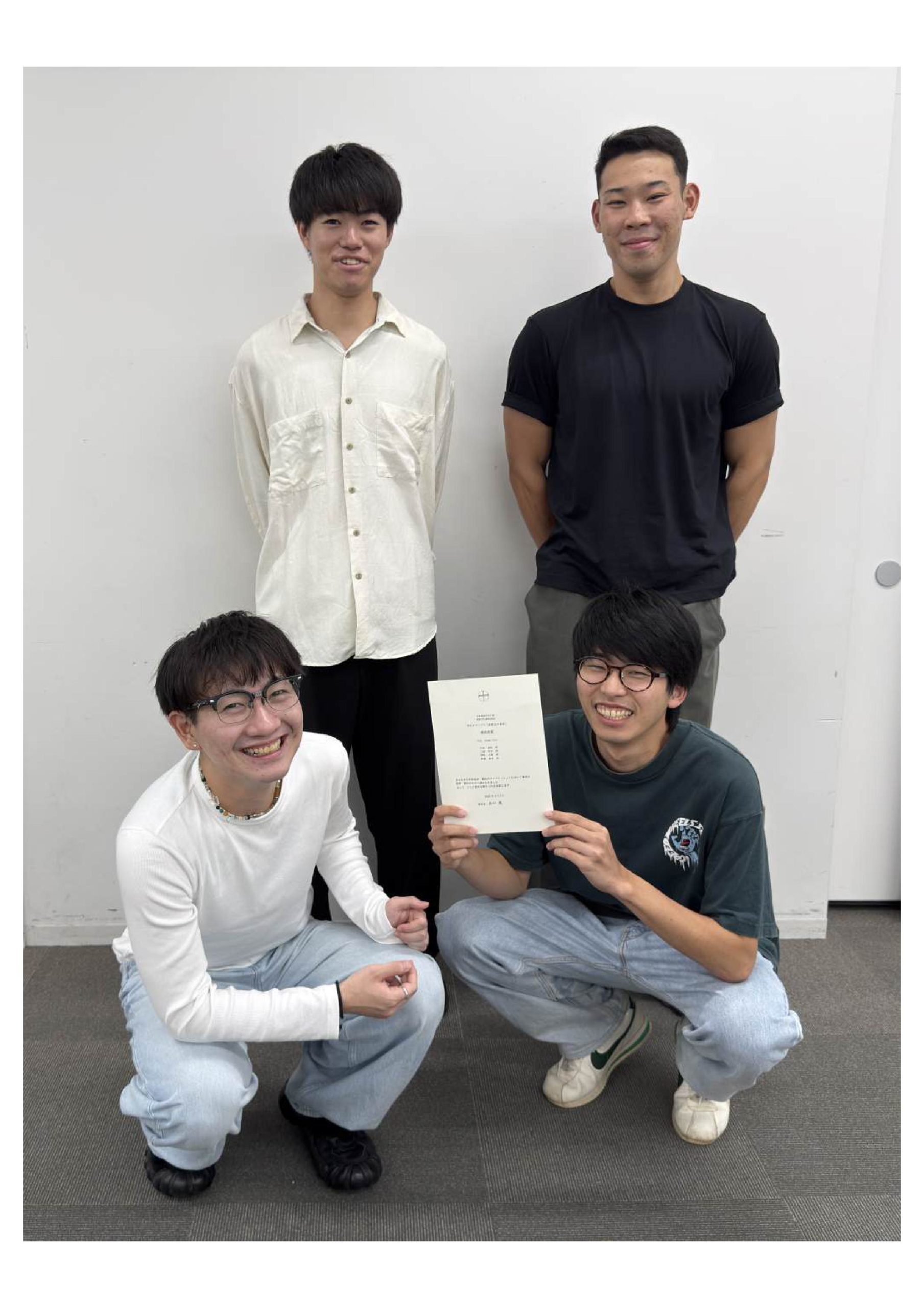 2025.08.08|建築学専攻博士前期課程2年の神保太亮さん(地域デザイン研究室(山中ゼミ))、新藤範幸さん(木質構造デザイン研究室(廣石ゼミ))、同1年大塚達哉さん、三浦哲平さん(建築設計研究室(古澤ゼミ))が建築文化週間学生グランプリ2025で審査員賞(出口亮賞)を受賞!