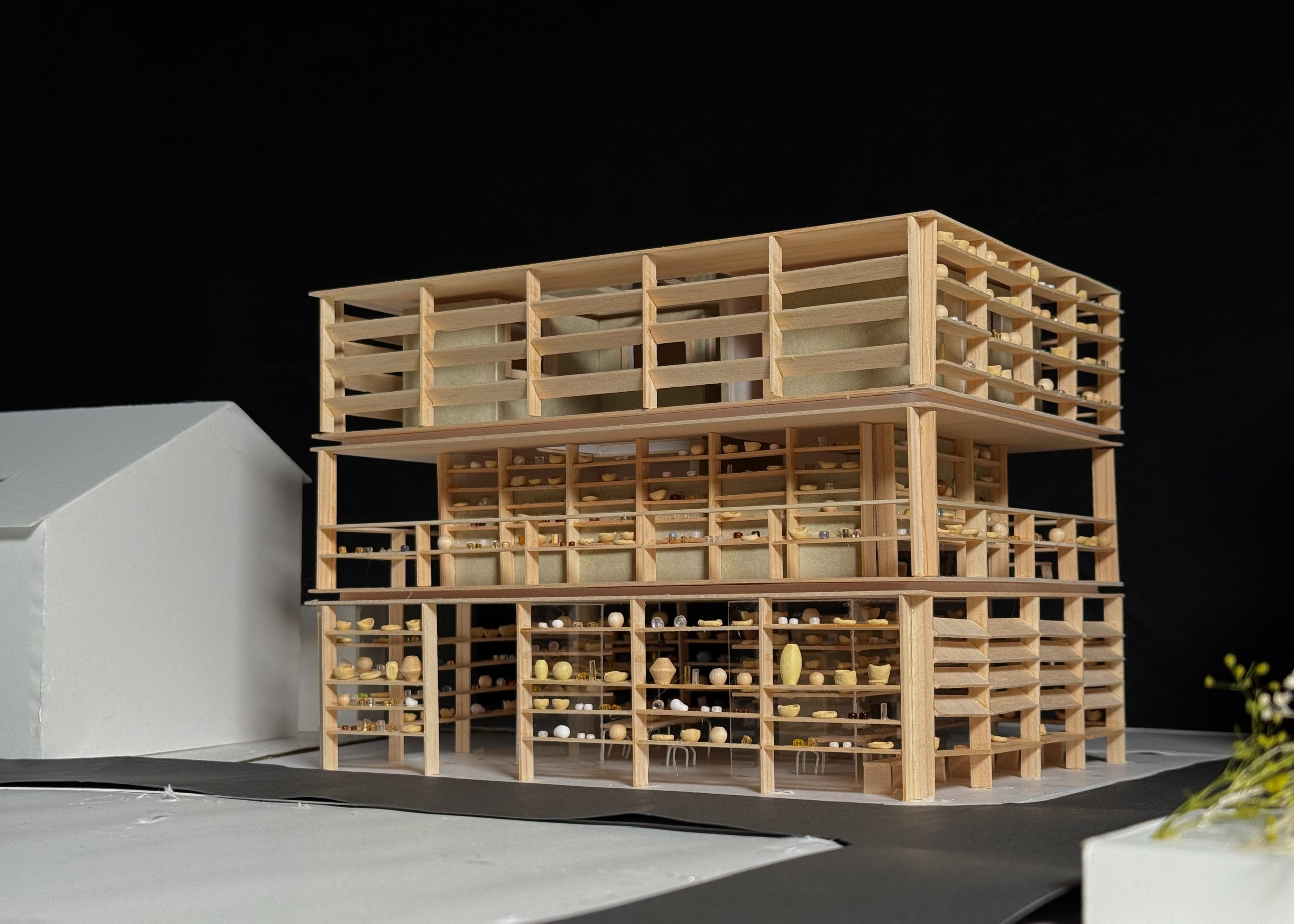 建築学縁祭2025〜Rookie選〜(主催:総合資格学院)において、建築学科2年の鈴木凛さんによる「開かれた棚、程よい距離」が誠賀建設賞を受賞しました。