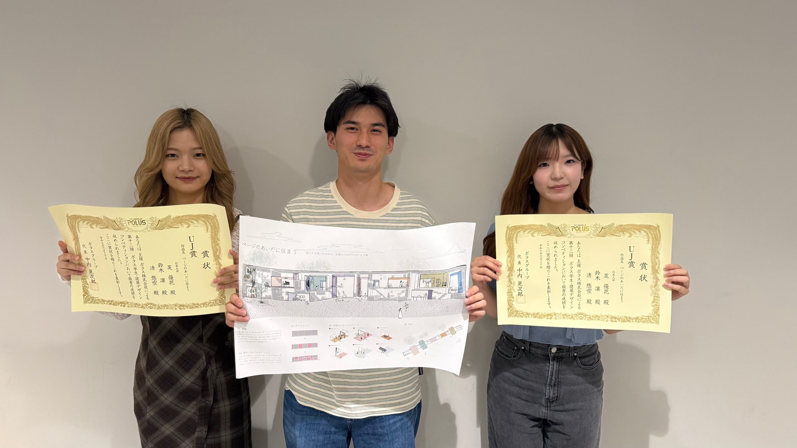2025.06.16|建築学科2年の鈴木凛さん、清悠空さん、芝優花さんが第12回POLUS-ボラス-学生・建築デザインコンペティションでUJ賞(Under Junior award)を受賞!