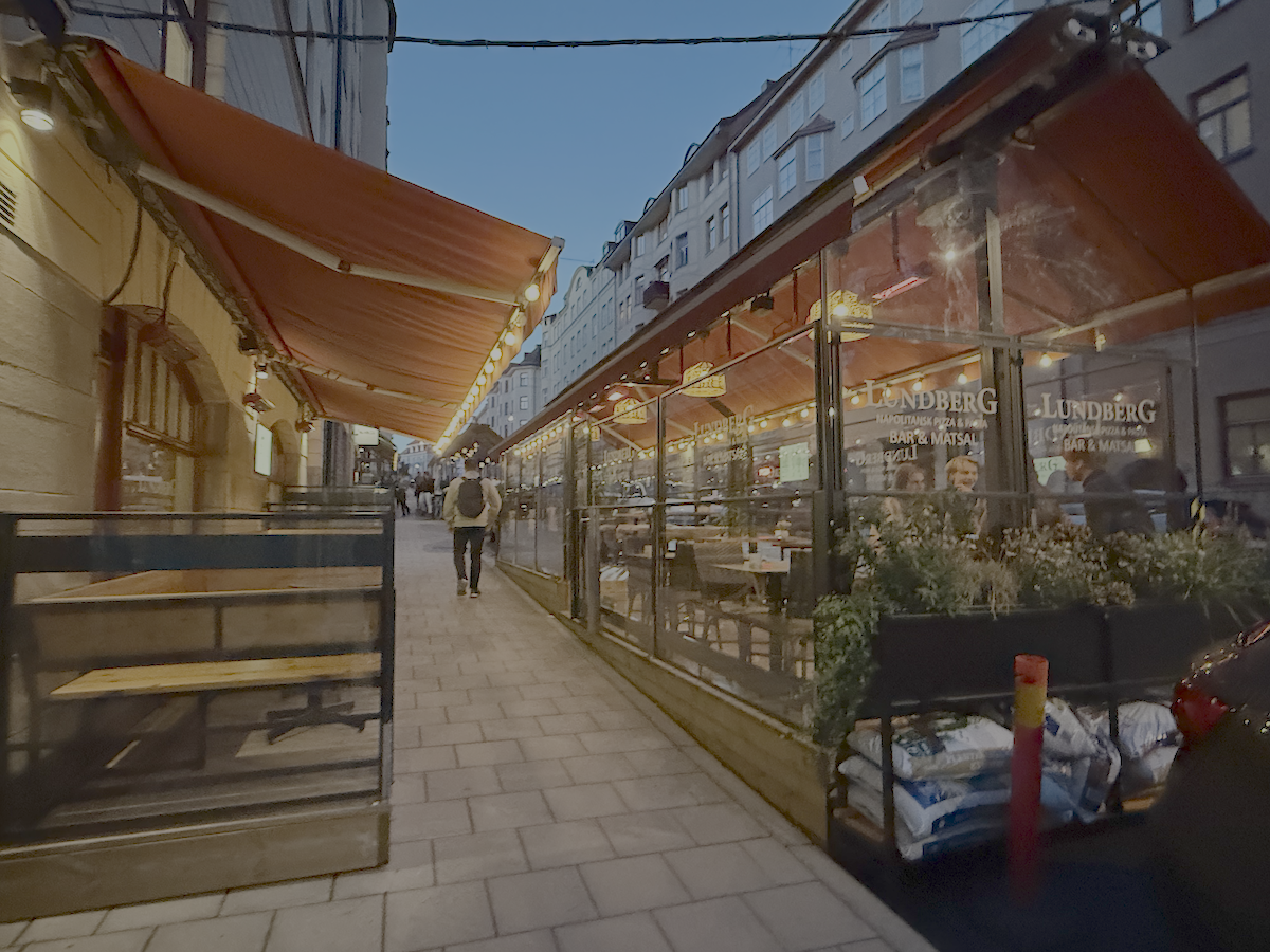 寒い北欧・ストックホルムでは、パークレット(Parklet)で路上駐車場を人中心のパブリックスペースに変え、ストーブなど防寒もみられる。Photo by Rui IZUMIYAMA