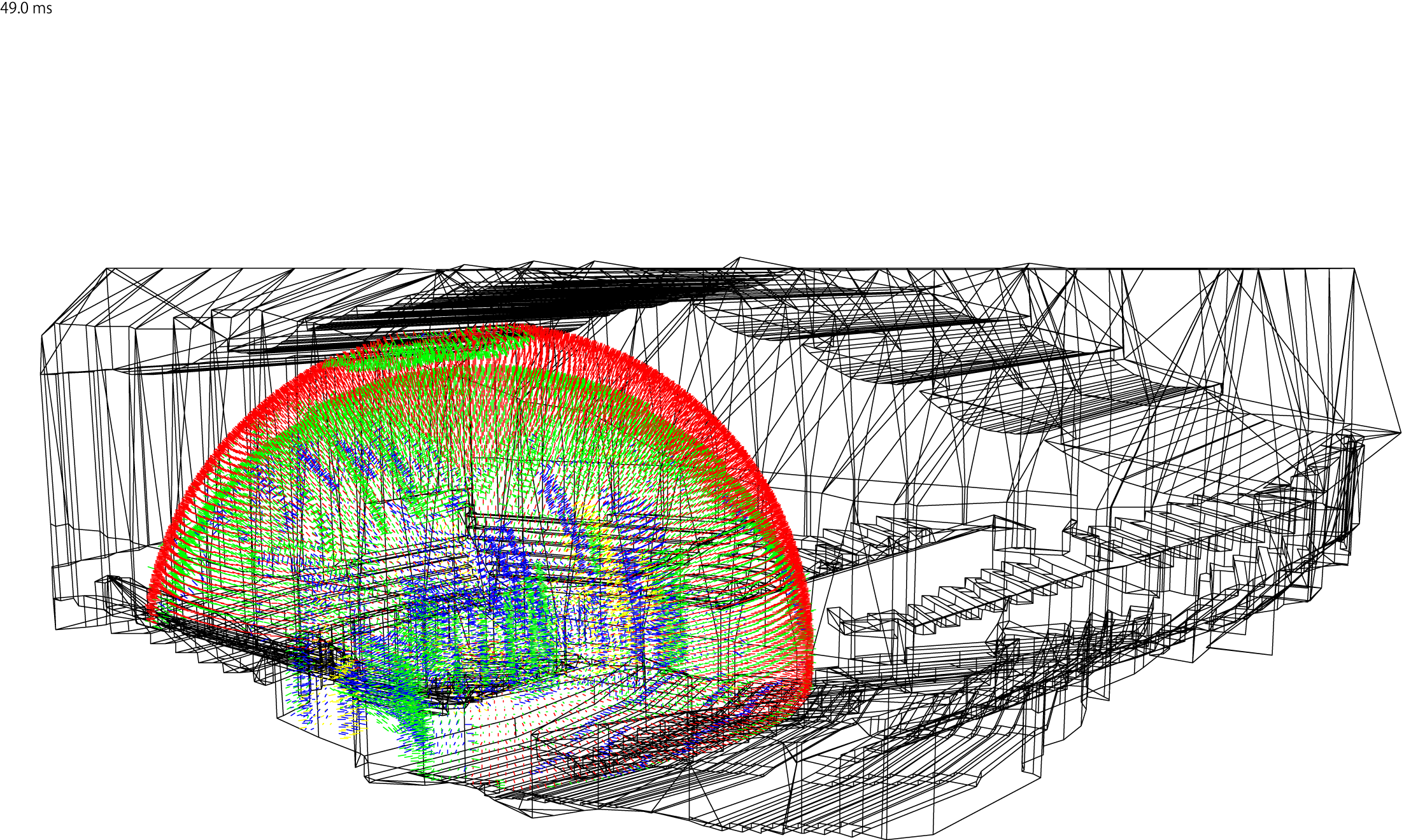 ホール内音響のシミュレーション例(舞台上からの音伝搬の様子)